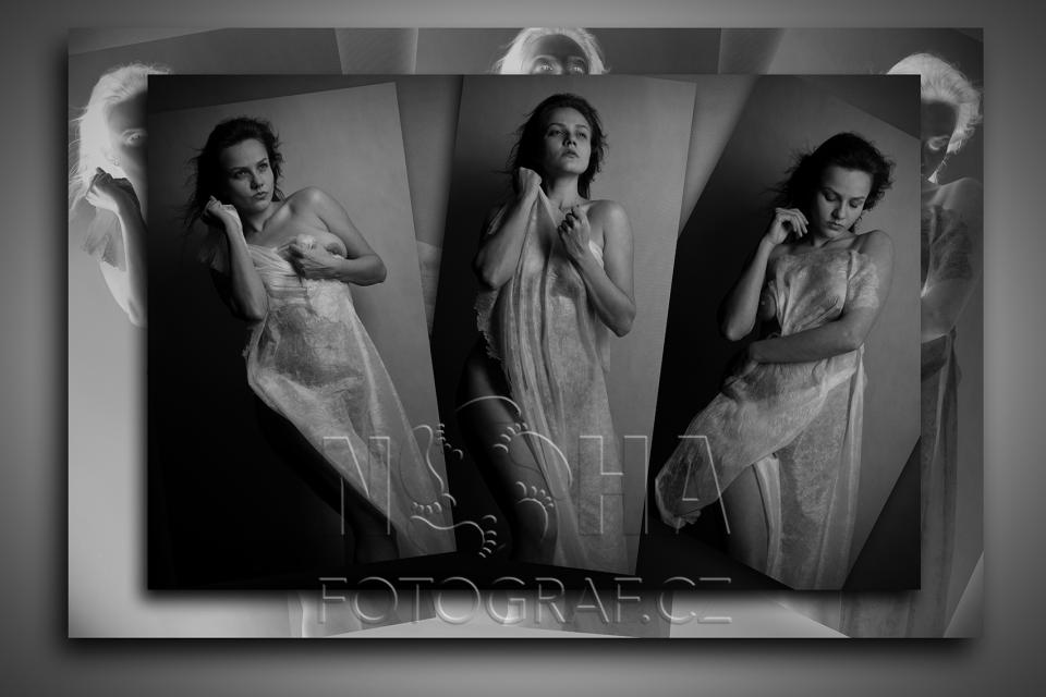 Fotografie zachycuje pohyb nejen fyzický, ale i vnitřní. Žena prochází proměnou, jakoby přecházela mezi různými emocemi, stavy mysli i fázemi sebeuvědomění. Látka v jejích rukou připomíná závoj mezi realitou a snem, mezi minulostí a přítomností, mezi odhalením a ochranou.